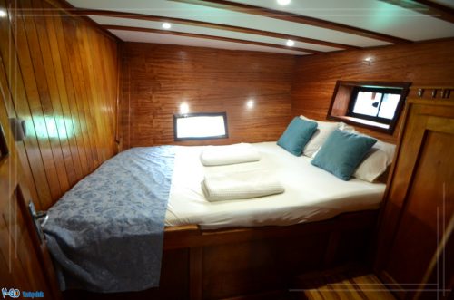 Unsere Gulet verfügt über insgesamt 16 Kabinen, 4 Doppelkabinen, 4 Vierfachkabinen, 7 Dreibettkabinen und 1 Doppelkabine, alle einfach und sauber mit eigenem WC und Klimaanlage, funktionierendem Ventilator und Schrank. Es verfügt über eine Leistung von 2 x 440 PS und einen Fiat-Iveco 40 kWa-Generator.